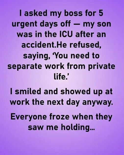 The monitors were still beeping when my boss told me to “separate work from your private life.” My son lay in a hospital bed, barely conscious, wires tracing the fragile rhythm of his breathing. I didn’t argue or cry. Something inside me went quiet and firm, not in surrender but in resolve. By the next morning, I returned to the office with hospital paperwork folded neatly in a folder and a clarity that felt heavier than anger. I wasn’t there to justify myself. I was there to set a boundary.