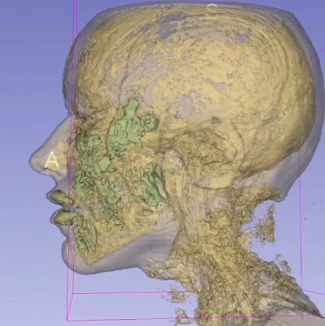 In the video, which has amassed over 7.2 million views, the MRI showed a grey face with green spots lighting up in various areas, including the lips and the cheeks, representing where the hyaluronic acid filler was still located.
