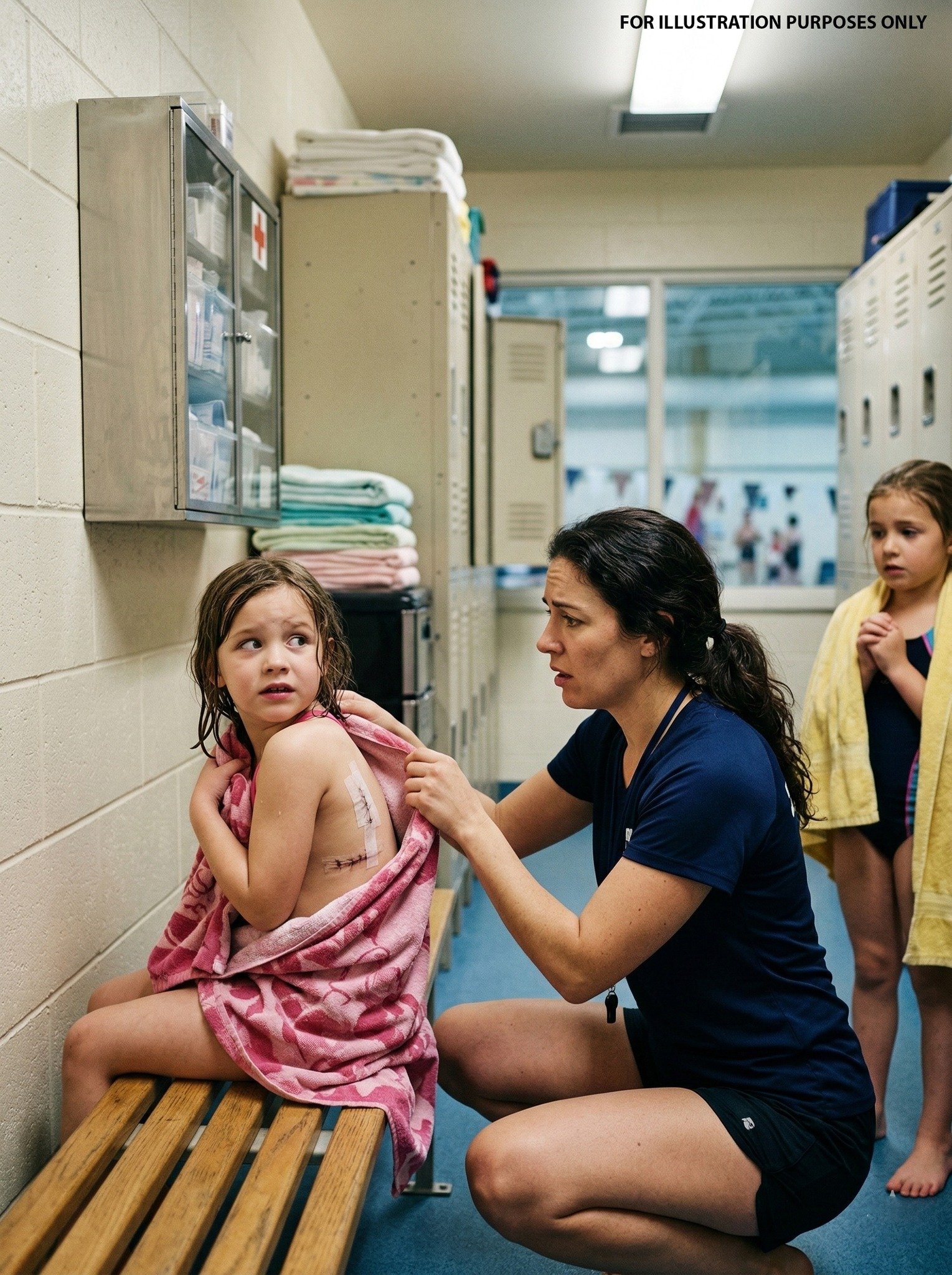Fresh surgical tape covered a small stitched incision on her shoulder blade. The stitches were clean and precise, the kind you would expect to see after a controlled medical procedure rather than a playground accident.