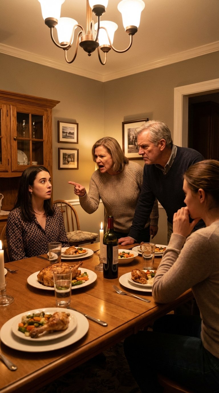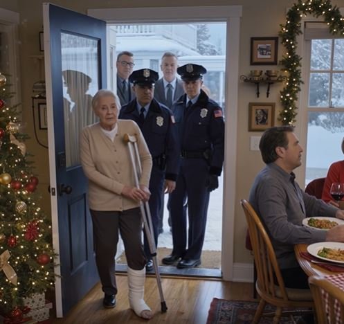 The Christmas lights twinkled, casting a deceptive glow over the dining room. I sat at the head of the table, the cast on my foot