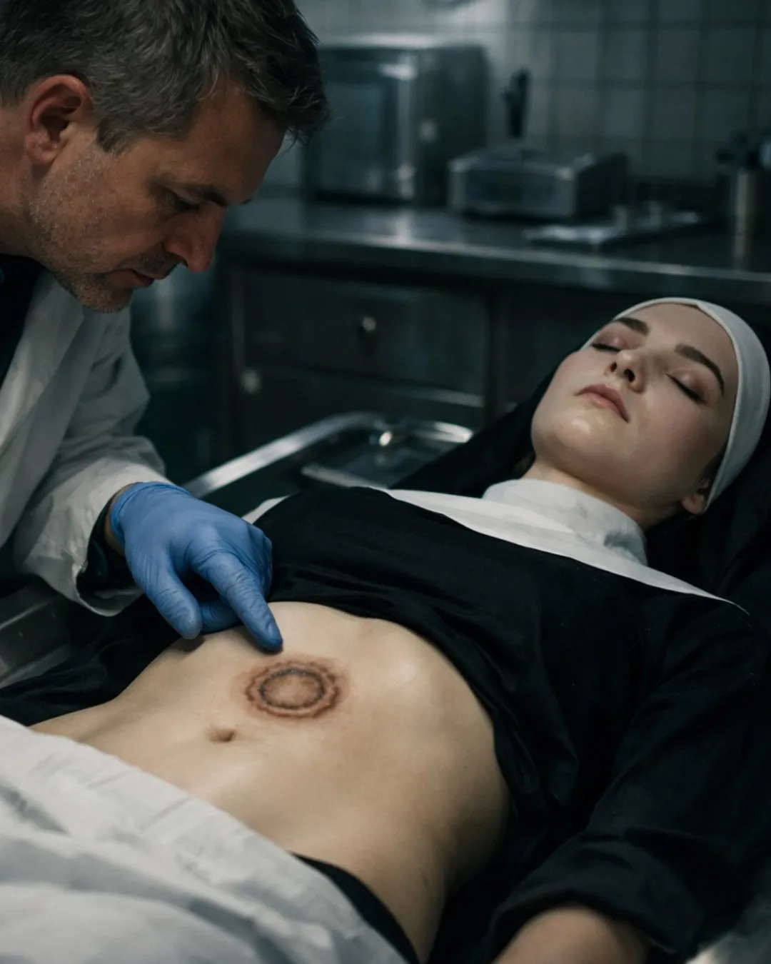 He asked clearly, intrigued, as he approached with slow steps. Stretched out on the stainless steel stretcher, lay something that was not seen every day in that morgue, the body of a nun.